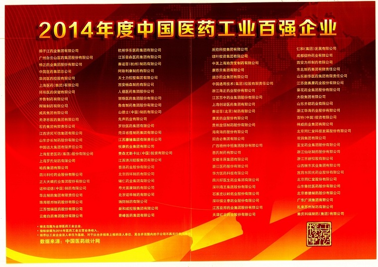 uu电玩官网控股荣膺“2014年度中国医药工业百强企业”